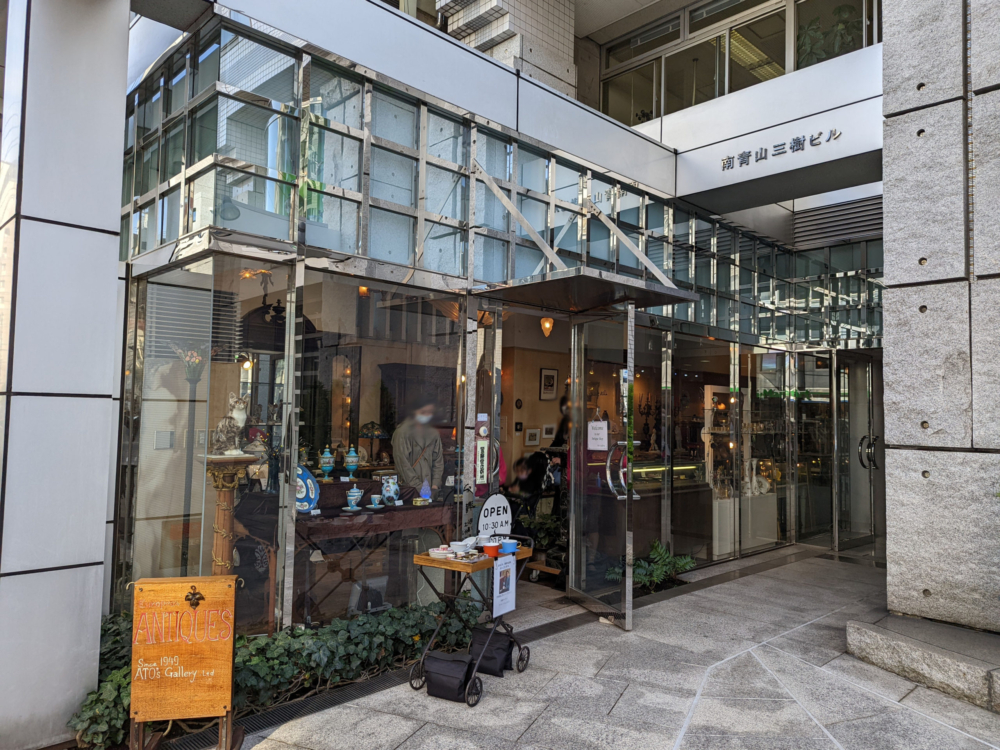 南青山三樹ビル は骨董通りにある9階建てのオフィスビルで、1988年に建てられました。路面1階部分には西洋アンティークの「阿藤ギャラリー」店舗があります。